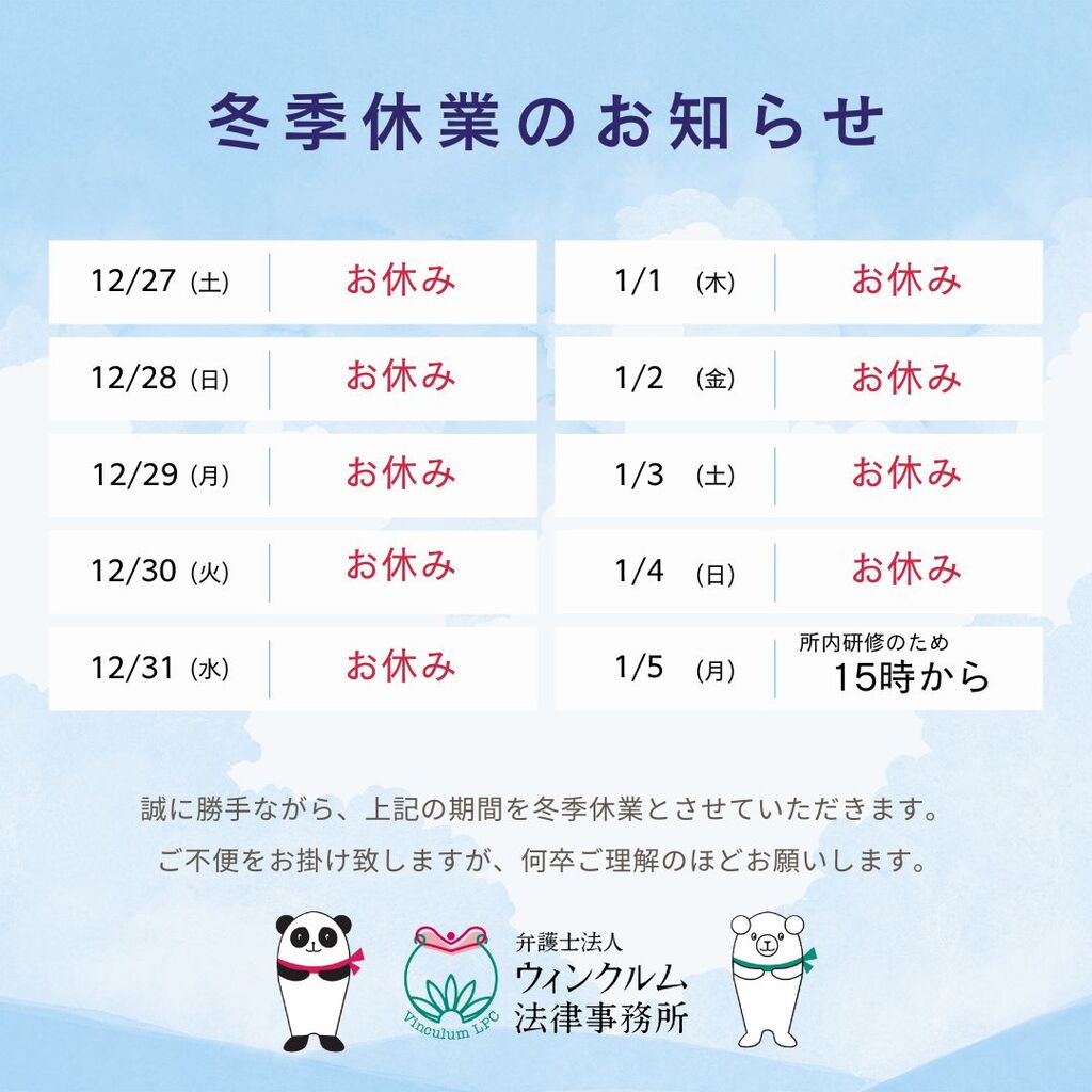 お知らせ2025年12月23日【冬季休業のお知らせ】